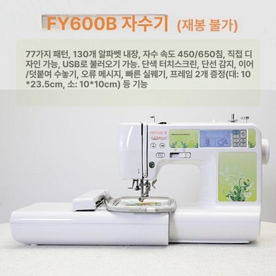 오버로크 자수 기계 바느질 박음질 이름자수기계 미싱기 수선 미니 재봉 재봉틀, FY600B 화면 단일자수기재봉불가, 기본 모델명/품번