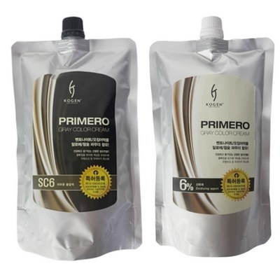 코겐 프리메로 그레이 스피드 7분 칼라크림 염색약 1제, 2제 각 500ml, 1개, SC6 새치멋내기 전용 어두운황갈색