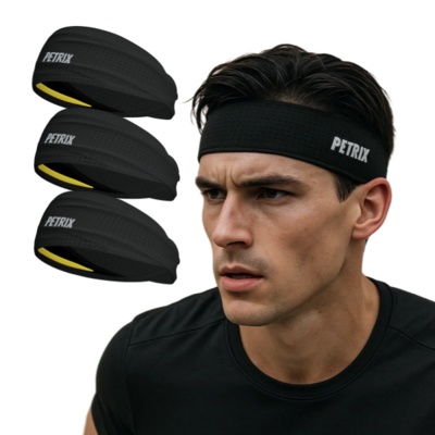 니즈데어 남녀 공용 스포츠 쿨링 헤어밴드 머리카락 땀 흘림 방지, 검정+검정+검정, 3개