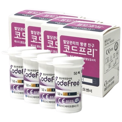 (무료 혈당기 증정이벤트) 코드프리 혈당검사지 200매 대용량 무코딩 혈당 측정기 정품, 4개, 50매입