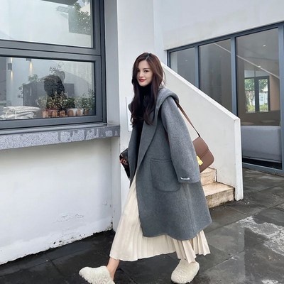 POMTOR 가을 겨울 신상 여성용 모직 후드 트렌치코트 캐주얼 롱 방한 바람막이 아우터 재킷 통근룩 데일리룩