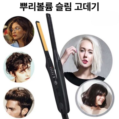 휴브론 고데기 짧은 웨이브 앞머리 슬림얇은 전문가용 미용실뽕 정수리 뿌리볼륨 매직기, 블랙