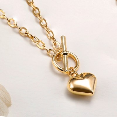 HAM925 실버 도금 14K 골드 하트 목걸이 심플한 기질의 클래식 하트 체인
