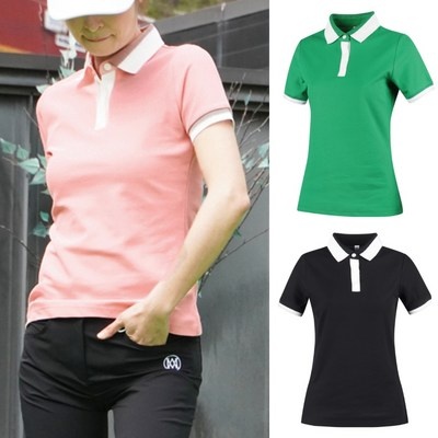 여성 심플 배색 라인 베이직 골프 카라 반팔티 학생 중장년 프리미엄
