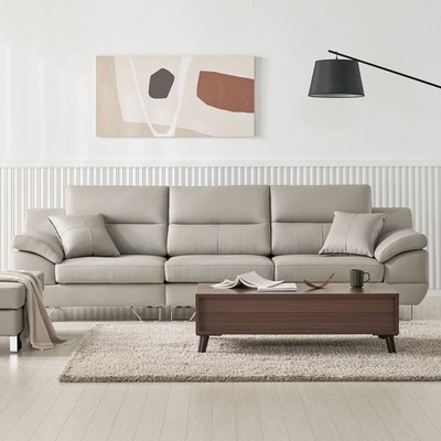 에넥스 이태리천연소가죽 4인용 소파, 라이트그레이