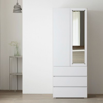 스칸디무드 커스트 터치 원룸 미니 전신거울 3단서랍 600 옷장, 화이트