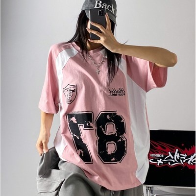 [디디댄스] 87 배색 레터링 힙합 반팔 단체복 데일리 방송댄스 줌바웨어 에어로빅복 걸스힙합