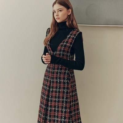 제로스트릿 브이넥 핀턱 트위드 원피스
